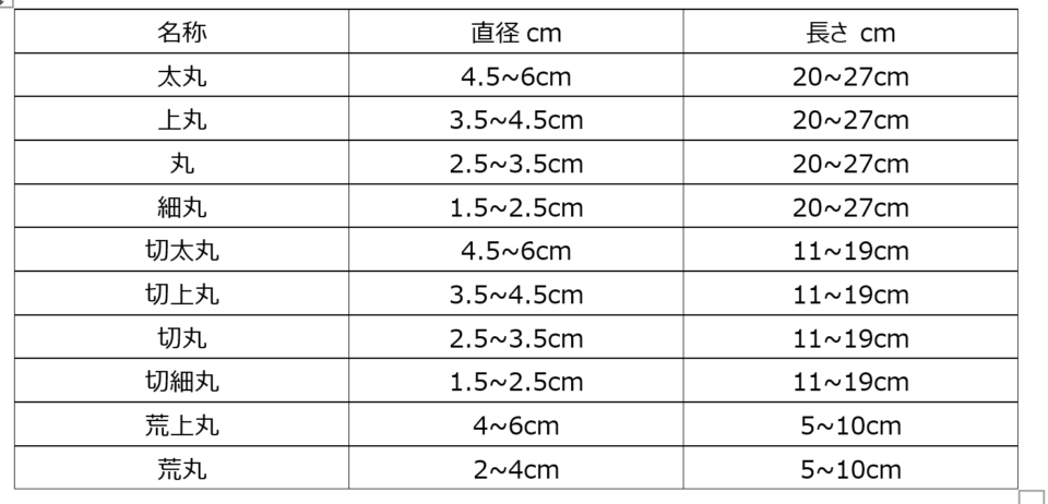 ここでは、備長炭の種類&長さの早見表をご紹介しています。グーグルなどで検索しても出てこない事があるので、このページをブックマークしておく事をオススメします。