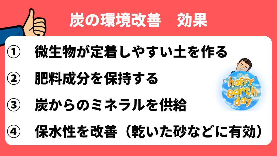 今回は、炭が環境に与える良い影響を3本立てでご紹介していきます。