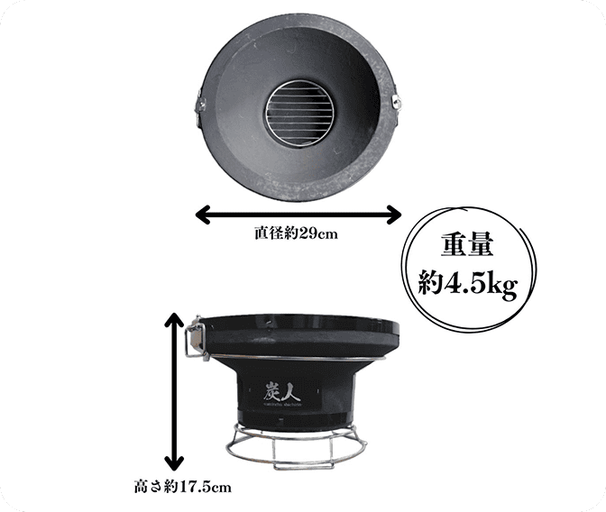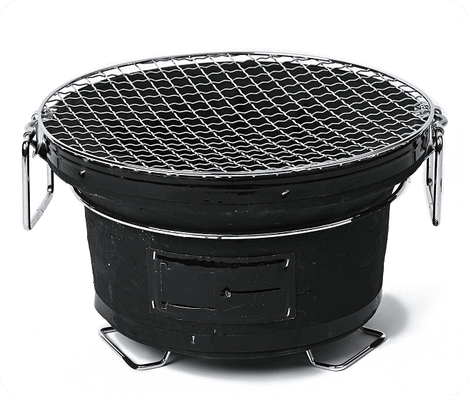 「炭人七輪」は昭和39年創業の炭のプロと熟練職人により細部までこだわり、設計・監修されています。 原料である珪藻土はもちろん、炭の収容量や吸気量に至るまで細部にこだわり、 一台一台真心を込めて製造しています。 これにより、七輪の最大の特徴でもある「断熱性」・「保温性」・「耐久性」を底上げし、炭が持つポテンシャルを最大限引き出します。 炭人七輪は、食材の美味しさを引き出し、食卓に心地よい団欒のひとときをお届けします。