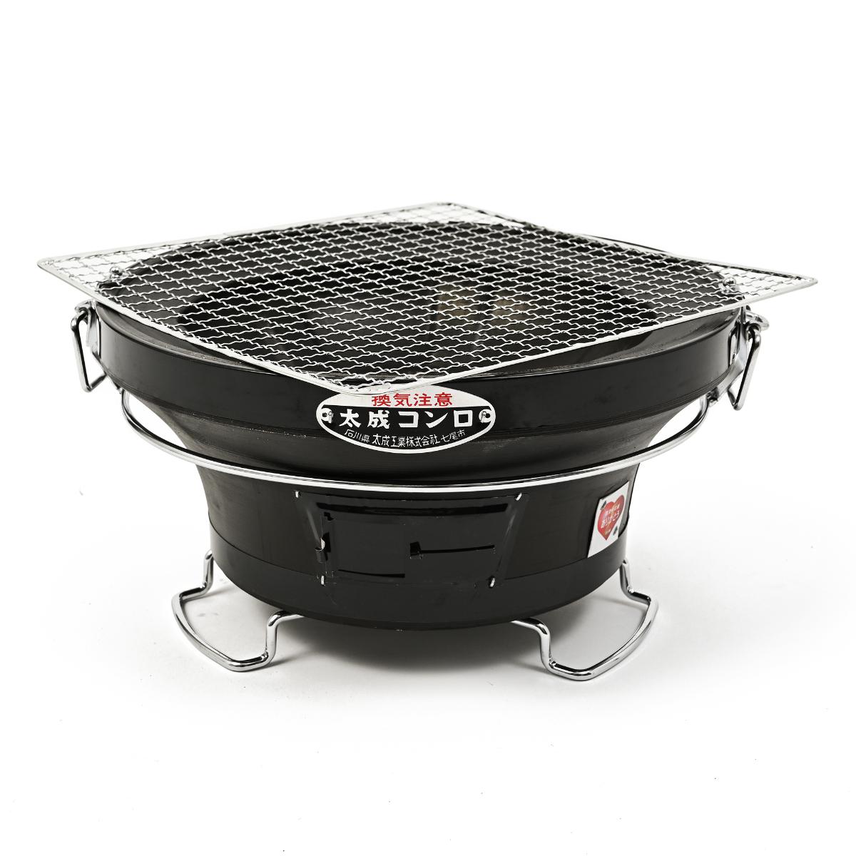 2〜4名用で、昔からの七輪を卓上で使用できるように高さを低くし特製環(ツル)を使用したデラックス仕様で、店舗用に最適です。さらに、アミづれ防止の金具付いてきます。