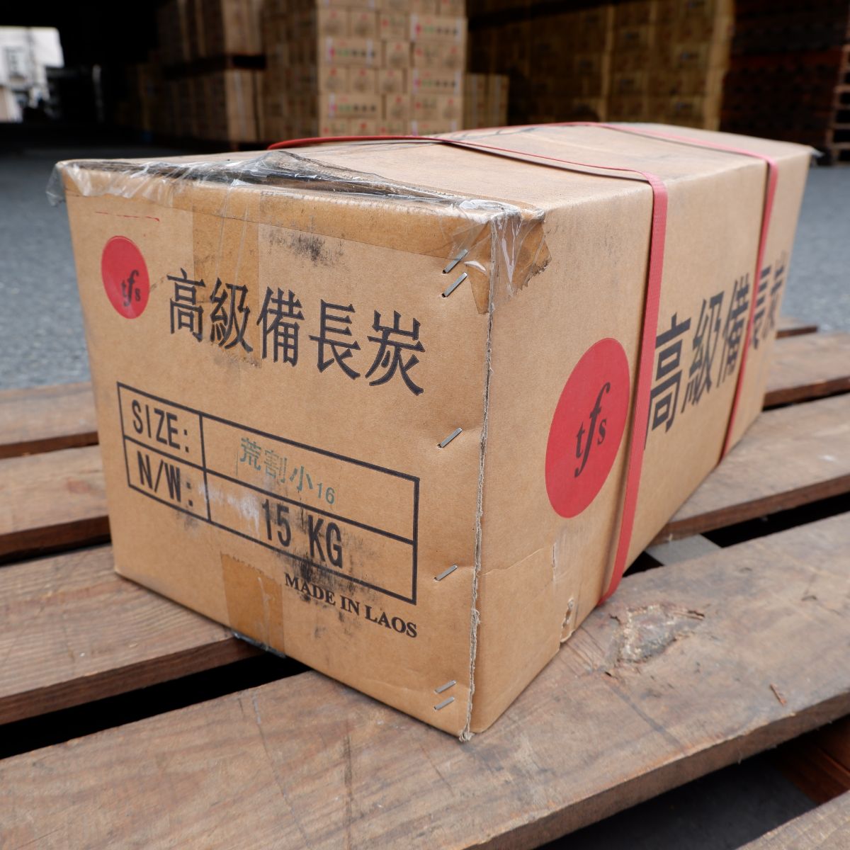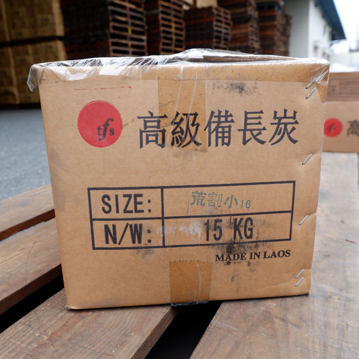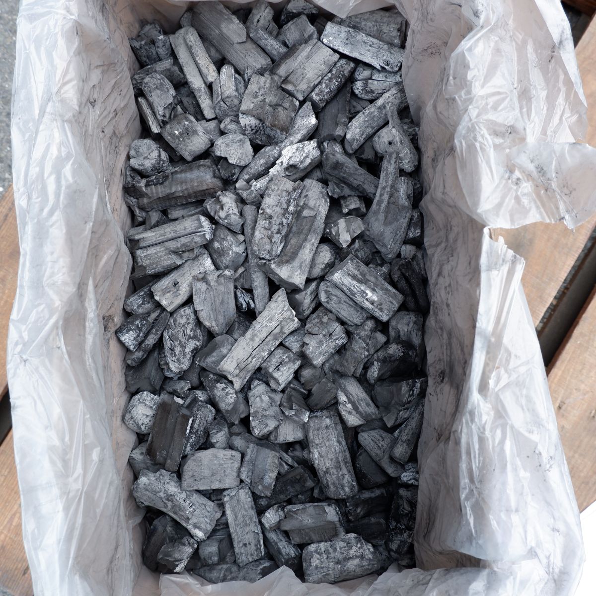 ラオスの備長炭です。荒割小の(荒)は、長さが短いサイズになります。荒割小の(割)は、製造の過程で割ったり、割れたりしたものを厳選しています。荒割小の(小)は、比較的細いものを詰めたものになります。備長炭は火力が強く、油が落ちても炎が出にくいので、食材が焦げるのを防ぎます。さらに、灰もオガ炭に比べると圧倒的に少ないので、安心してご使用いただけます。
