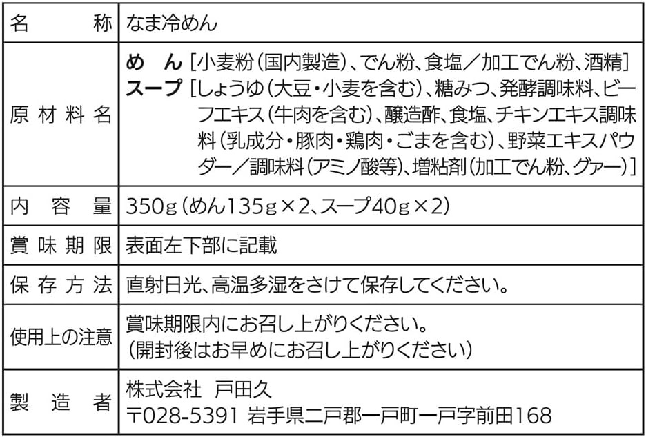 戸田久 牛テールスープで食べるもりおか冷麺 350g 10袋(1箱)