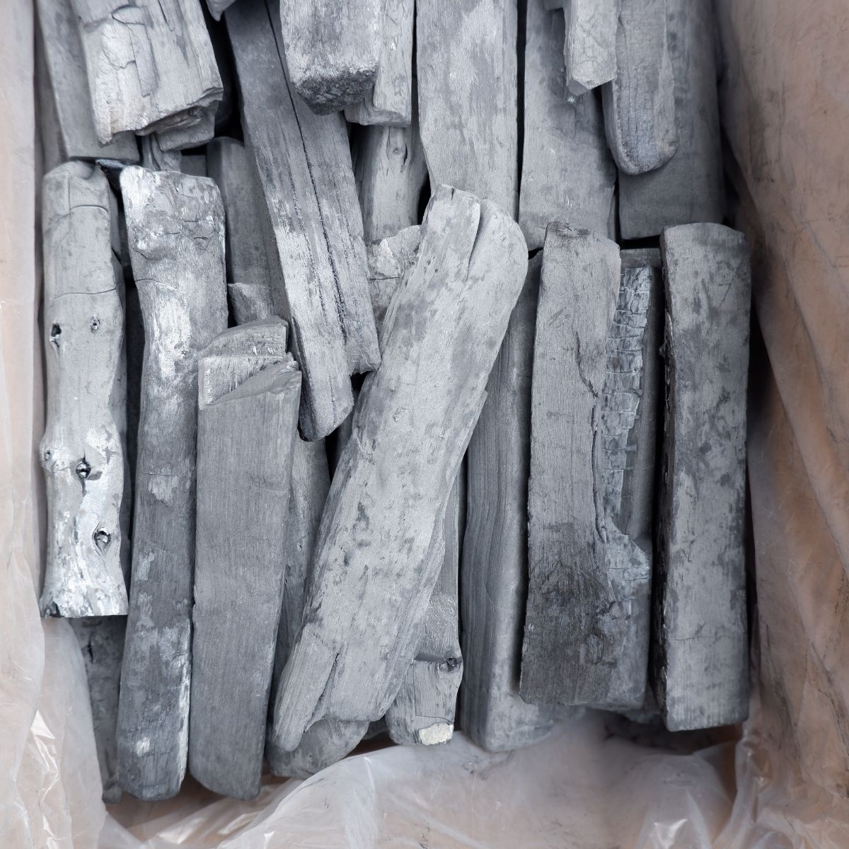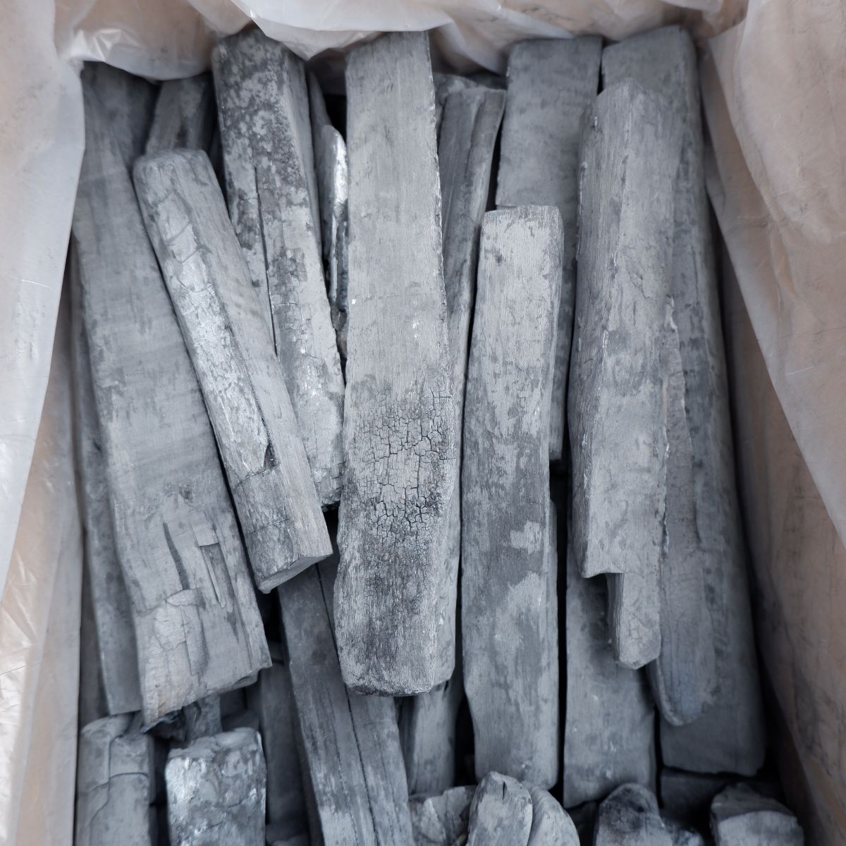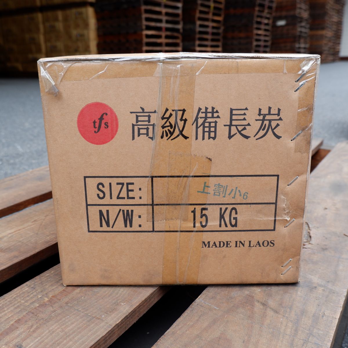ラオスの備長炭です。上割の(上)は備長炭の中でも、長さが長いサイズになります。上割の(割)は製造の過程で割ったり、割れたりしたものを厳選しています。上割小の(小)は、幅が太いか細いかの違いです。長いので、よく焼き場が長いタイプの焼き鳥屋さんなどにご愛用いただいています。備長炭は火力が強く、油が落ちても炎が出にくいので、食材が焦げるのを防ぎます。さらに、灰もオガ炭に比べると圧倒的に少ないので、安心してご使用いただけます。