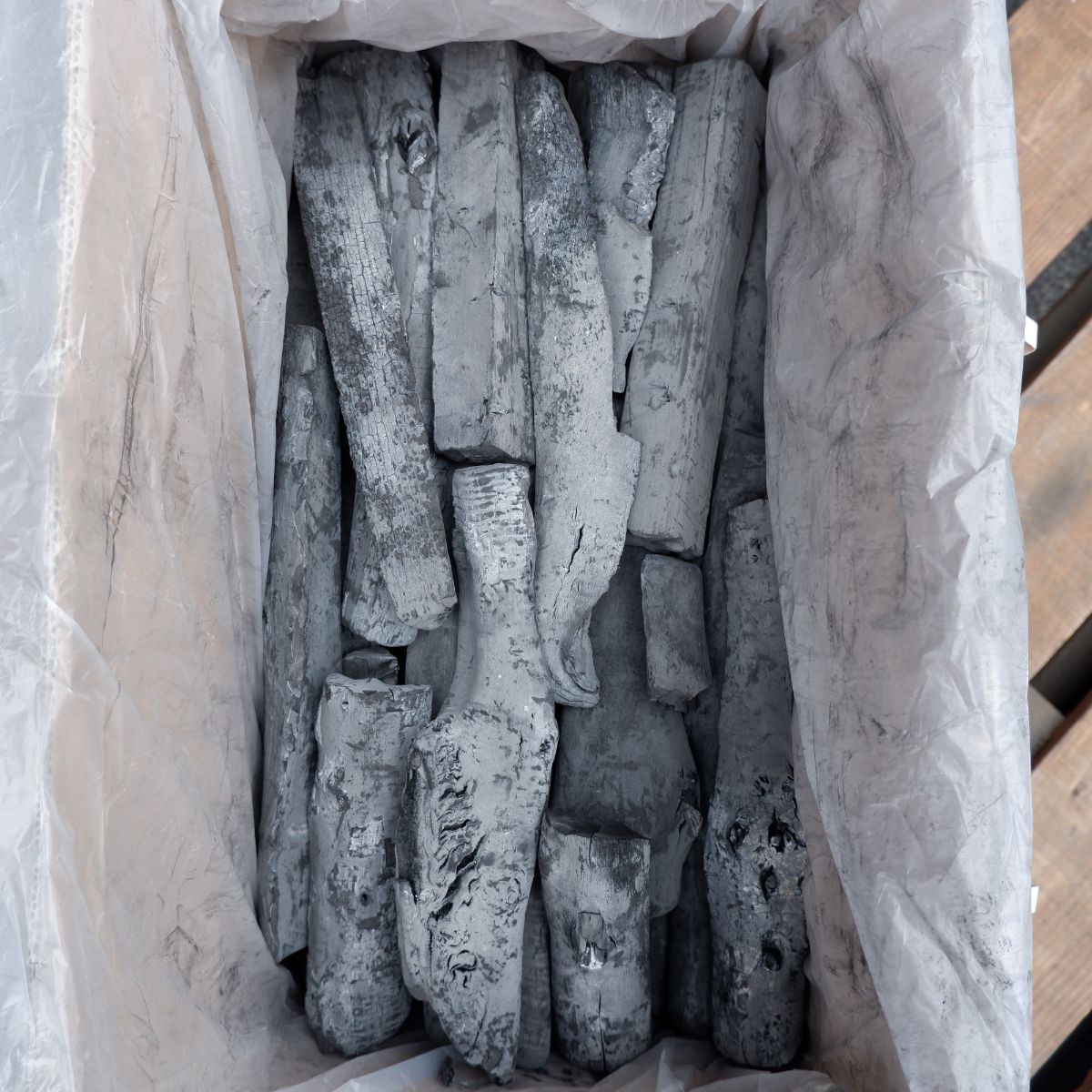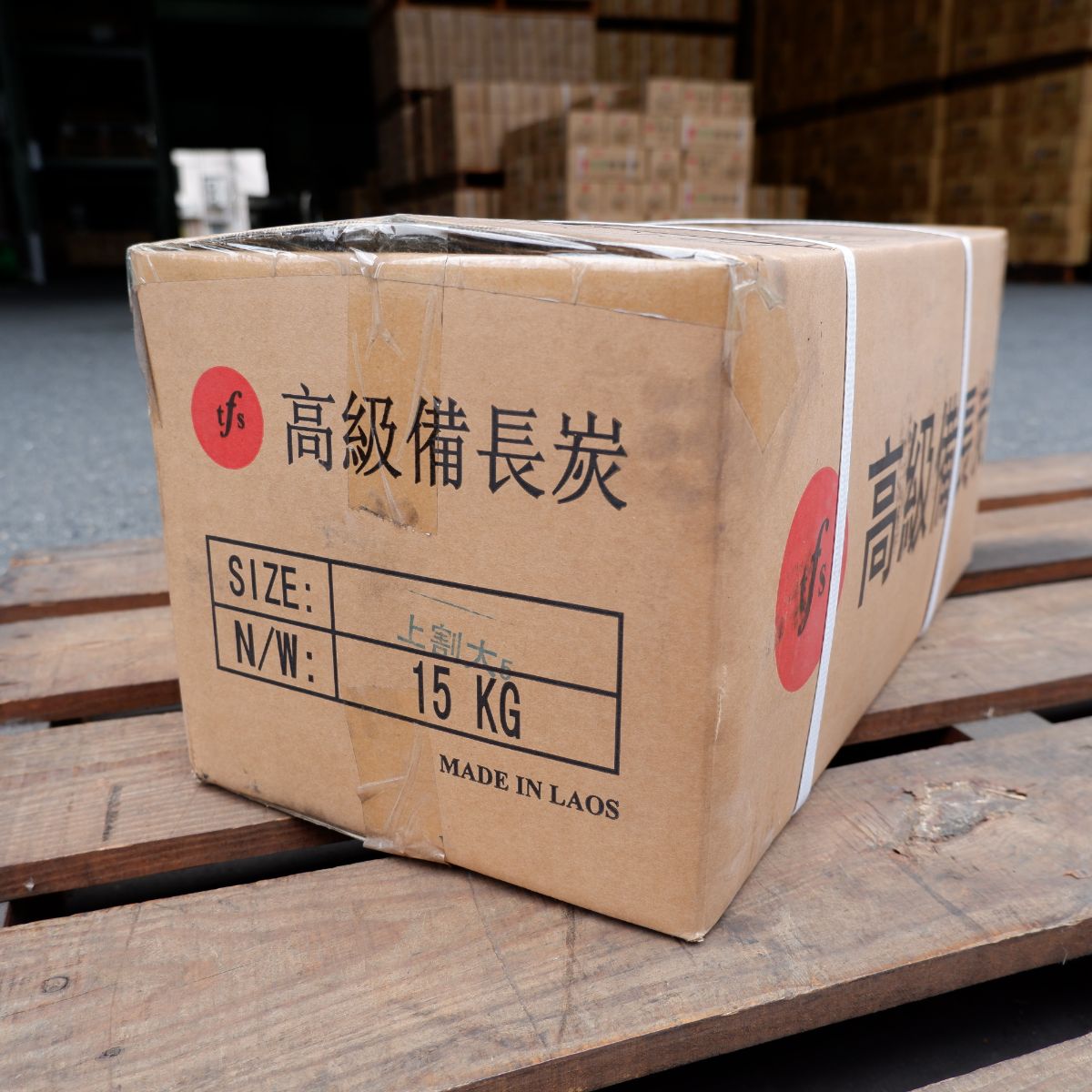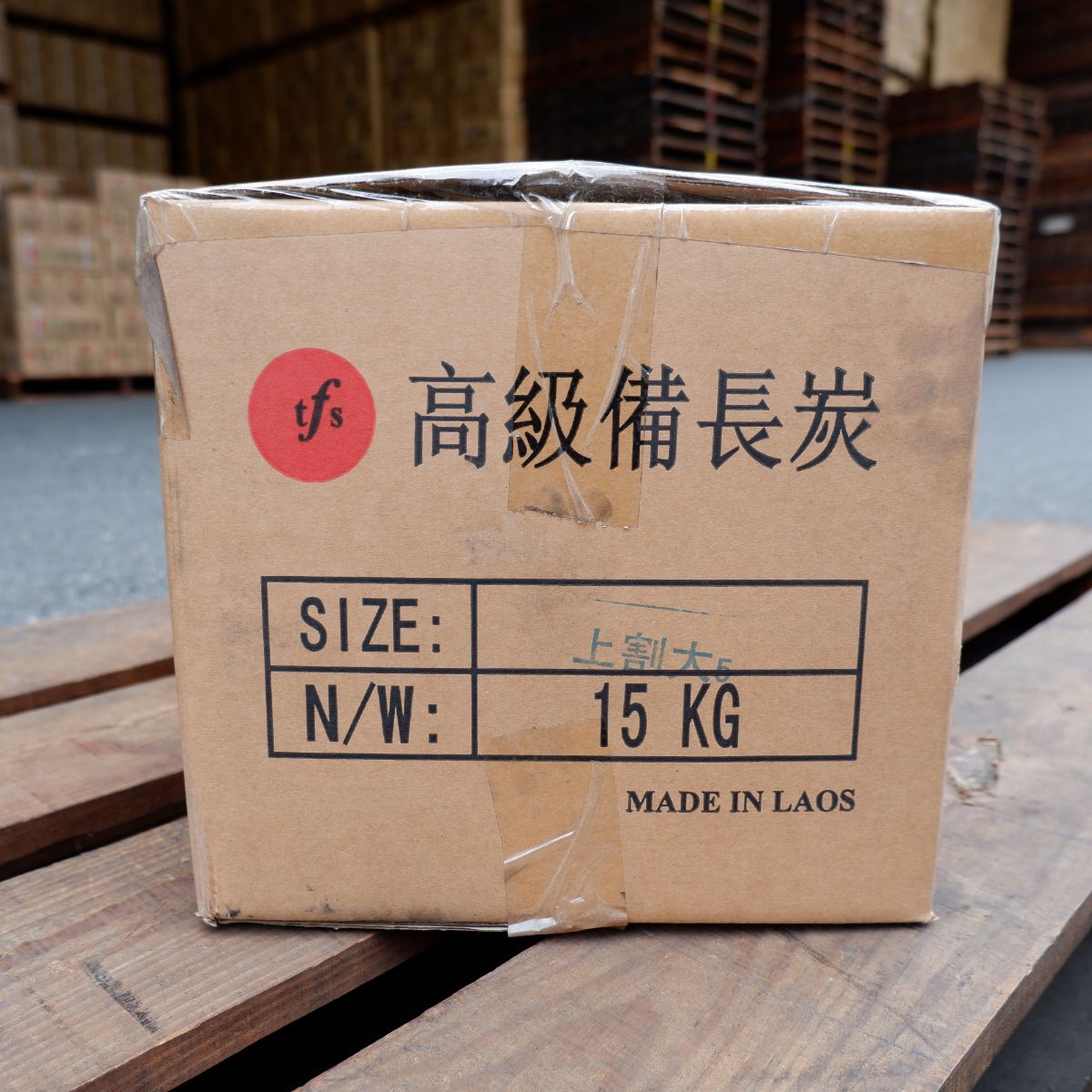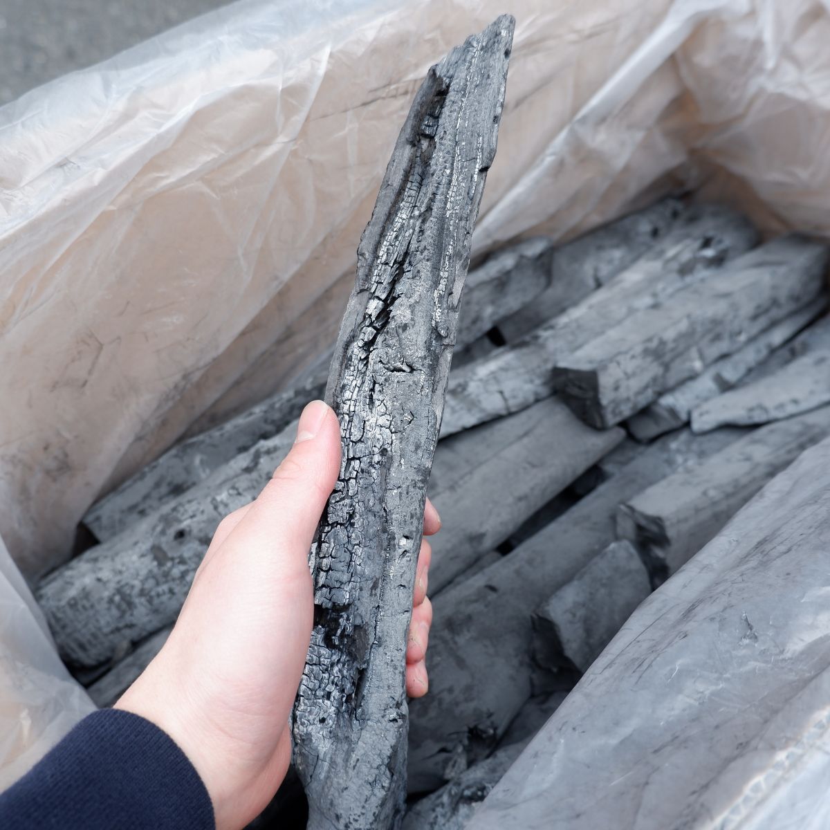 ラオスの備長炭です。上割の(上)は備長炭の中でも、長さが長いサイズになります。上割の(割)は製造の過程で割ったり、割れたりしたものを厳選しています。上割大の(大)は、幅が太いか細いかの違いです。大で上割なので、かなり大きめのタイプになります。大きいので、火付けはしにくいですが、1日中長持ちして使用してもらうことが可能です。備長炭は火力が強く、油が落ちても炎が出にくいので、食材が焦げるのを防ぎます。さらに、灰もオガ炭に比べると圧倒的に少ないので、安心してご使用いただけます。