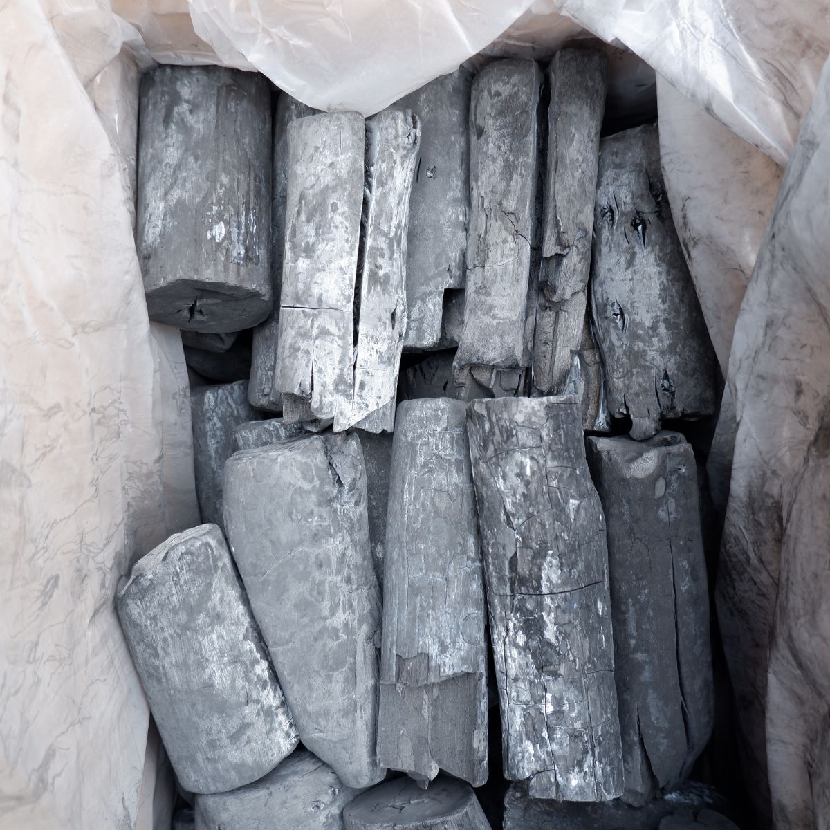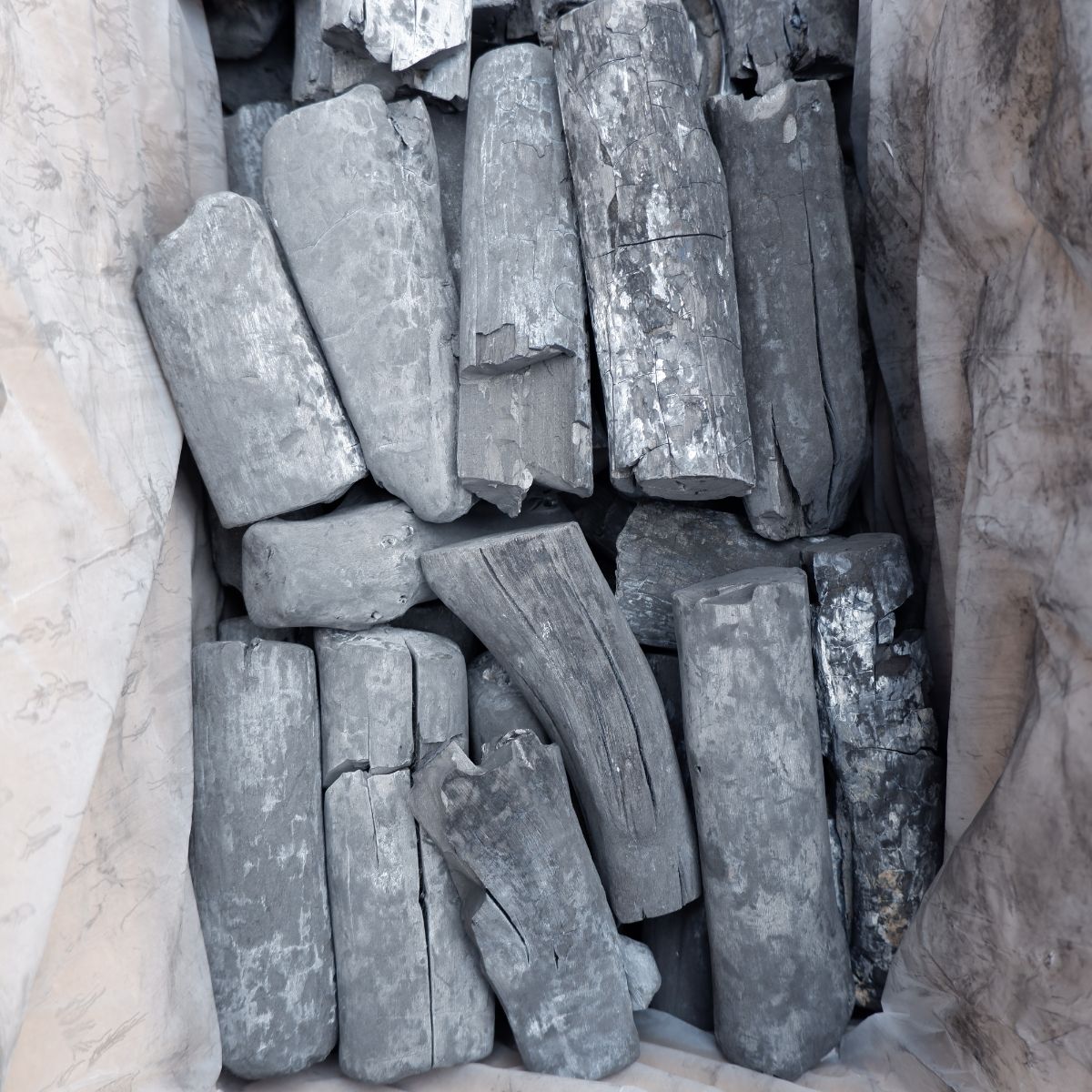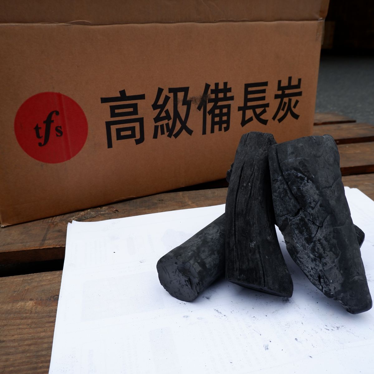 ラオスの備長炭です。切太丸の(切)は備長炭の中でも、長さが中くらいのサイズになります。切太丸の(丸)は、炭が割れたり、割ったものではなく、丸いものを厳選しています。太丸なので、炭の中でも太いタイプになります。丸いので形がきれいで、お客様の前で焼くと喜ばれますよ。備長炭は火力が強く、油が落ちても炎が出にくいので、食材が焦げるのを防ぎます。さらに、灰もオガ炭に比べると圧倒的に少ないので、安心してご使用いただけます。