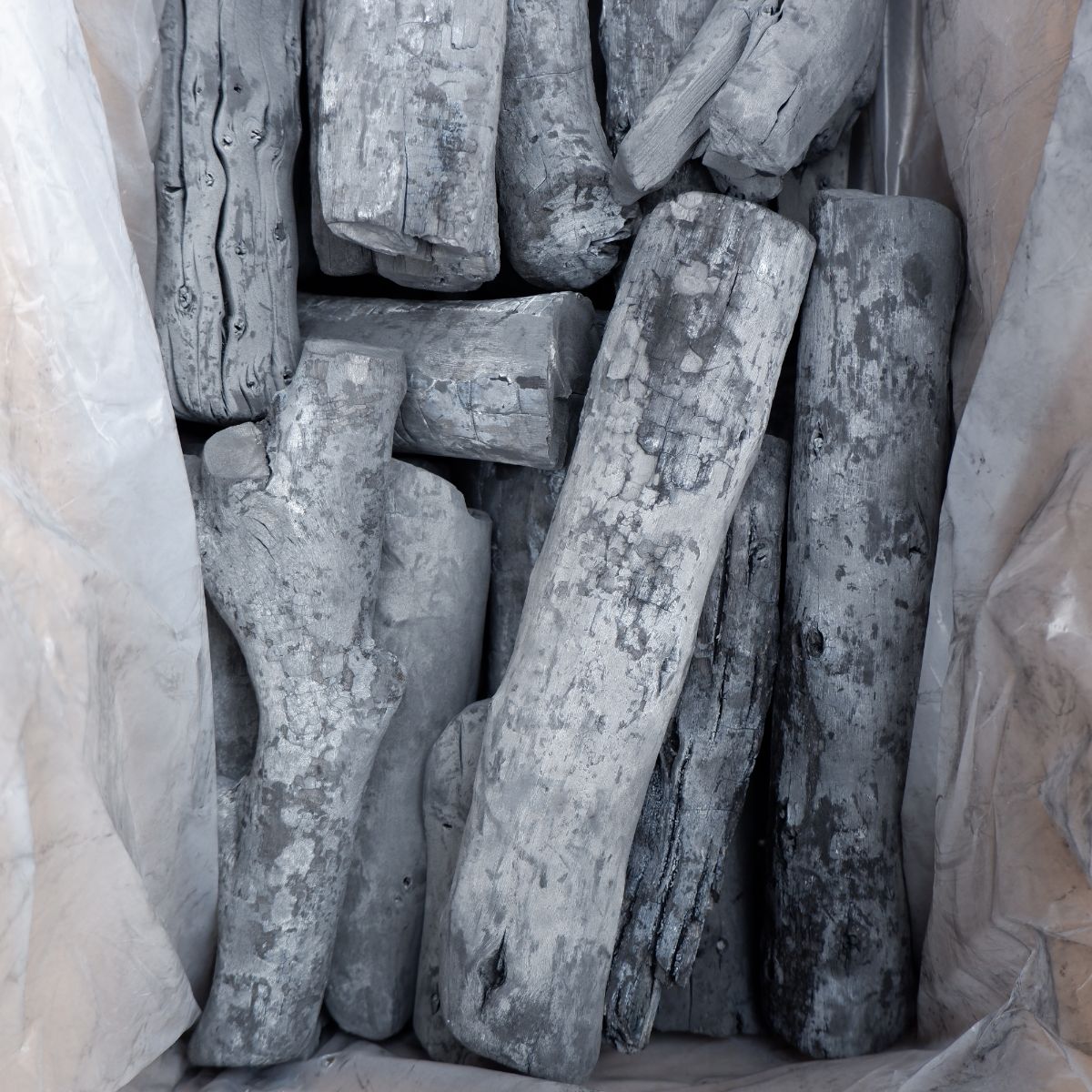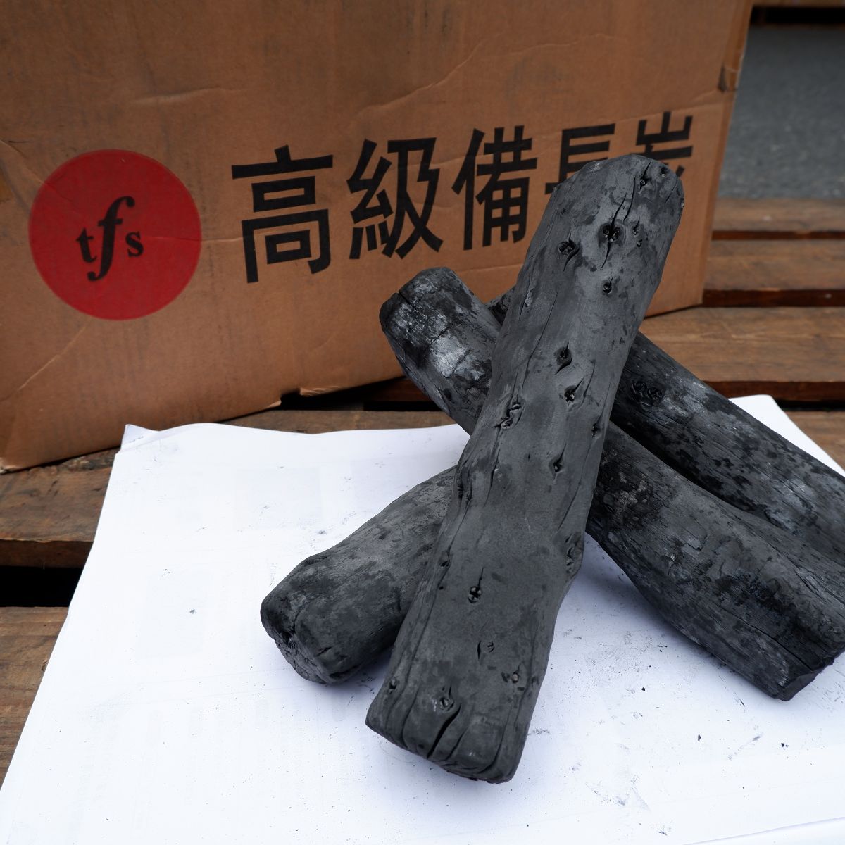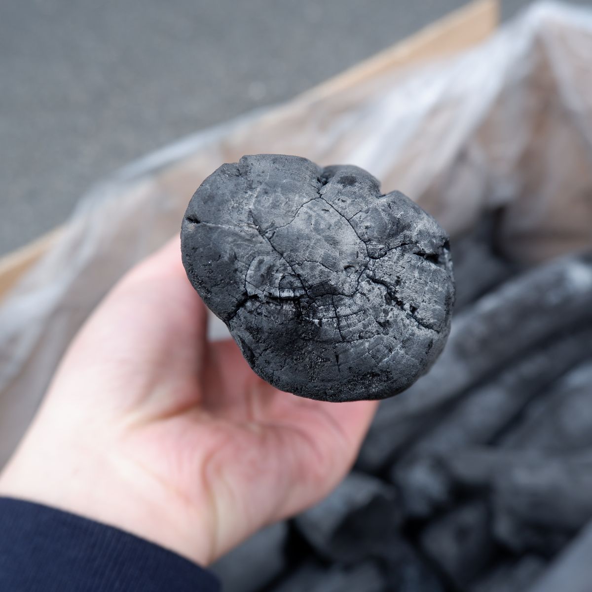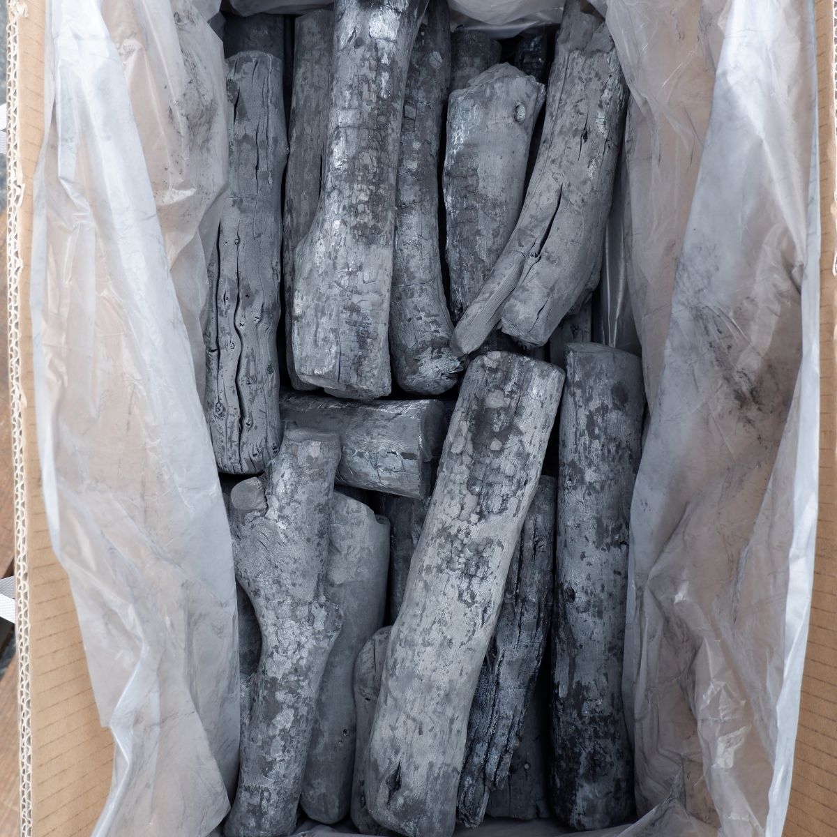 ラオスの備長炭です。太丸は切太丸よりも、長さが長いサイズになります。太丸の(丸)は、炭が割れたり、割ったものではなく、丸いものを厳選しています。太丸なので、炭の中でも太いタイプになります。丸いので形がきれいで、お客様の前で焼くと喜ばれますよ。備長炭は火力が強く、油が落ちても炎が出にくいので、食材が焦げるのを防ぎます。さらに、灰もオガ炭に比べると圧倒的に少ないので、安心してご使用いただけます。