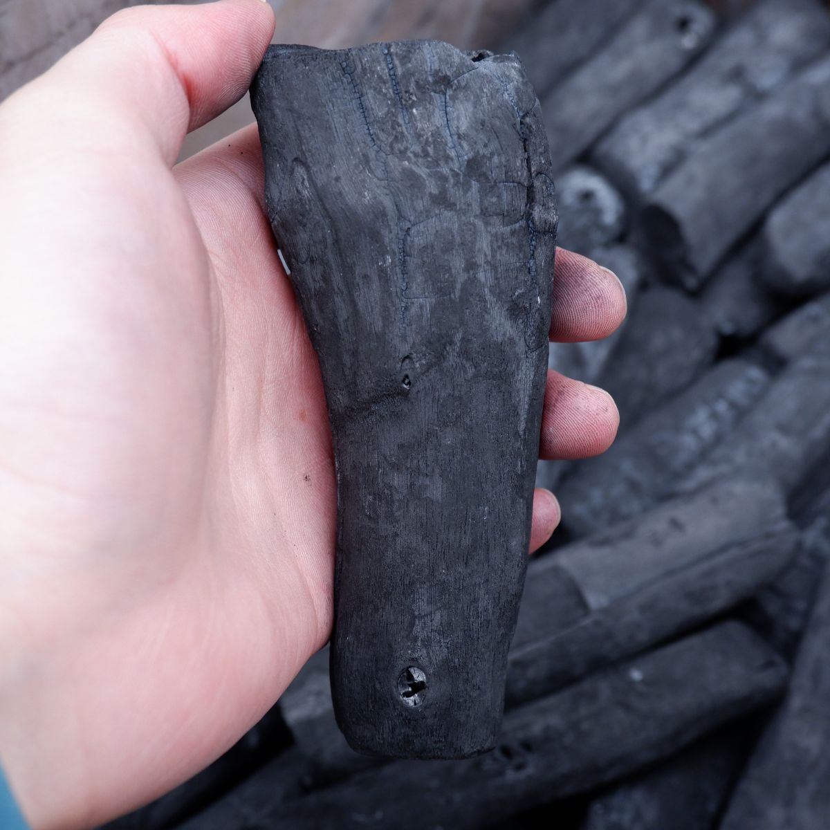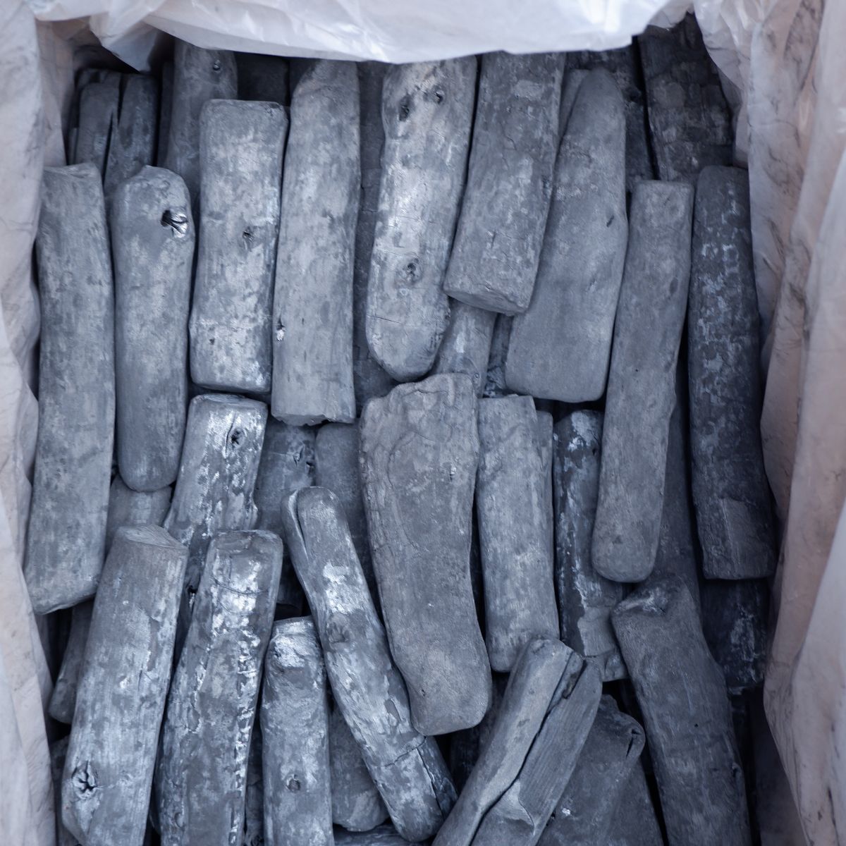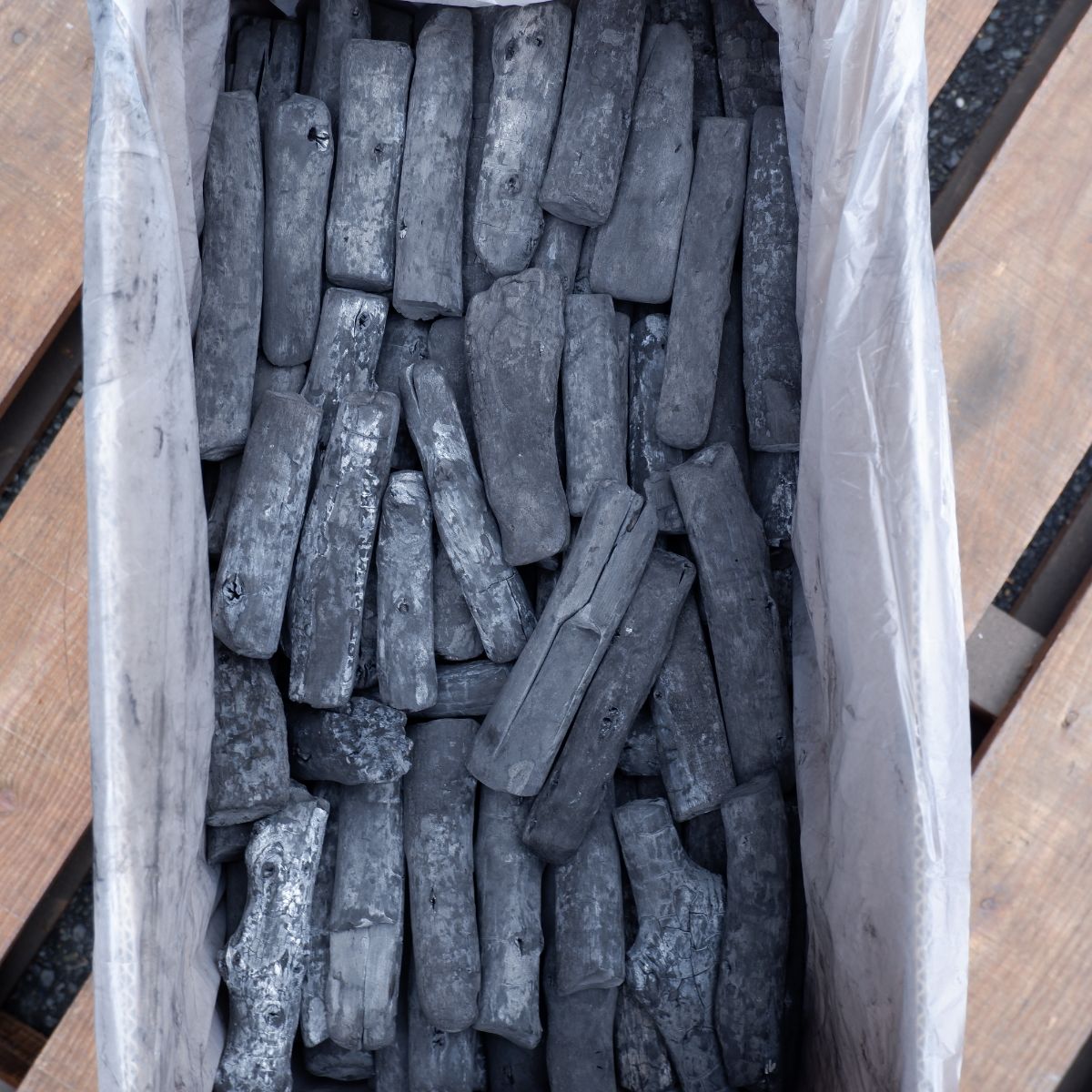 ラオスの備長炭です。切丸の(切)は、備長炭の中でも、長さが中くらいのサイズになります。細丸よりも、太いタイプになります。切丸の(丸)は、炭が割れたり、割ったものではなく、丸いものを厳選しています。丸いので形がきれいで、お客様の前で焼くと喜ばれますよ。備長炭は火力が強く、油が落ちても炎が出にくいので、食材が焦げるのを防ぎます。さらに、灰もオガ炭に比べると圧倒的に少ないので、安心してご使用いただけます。