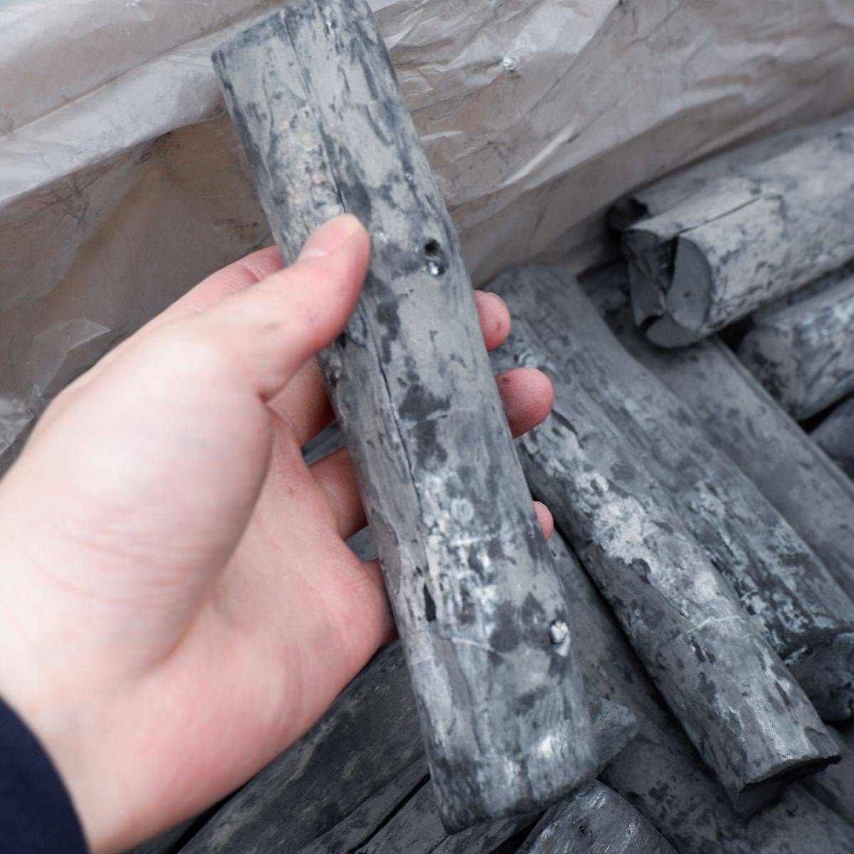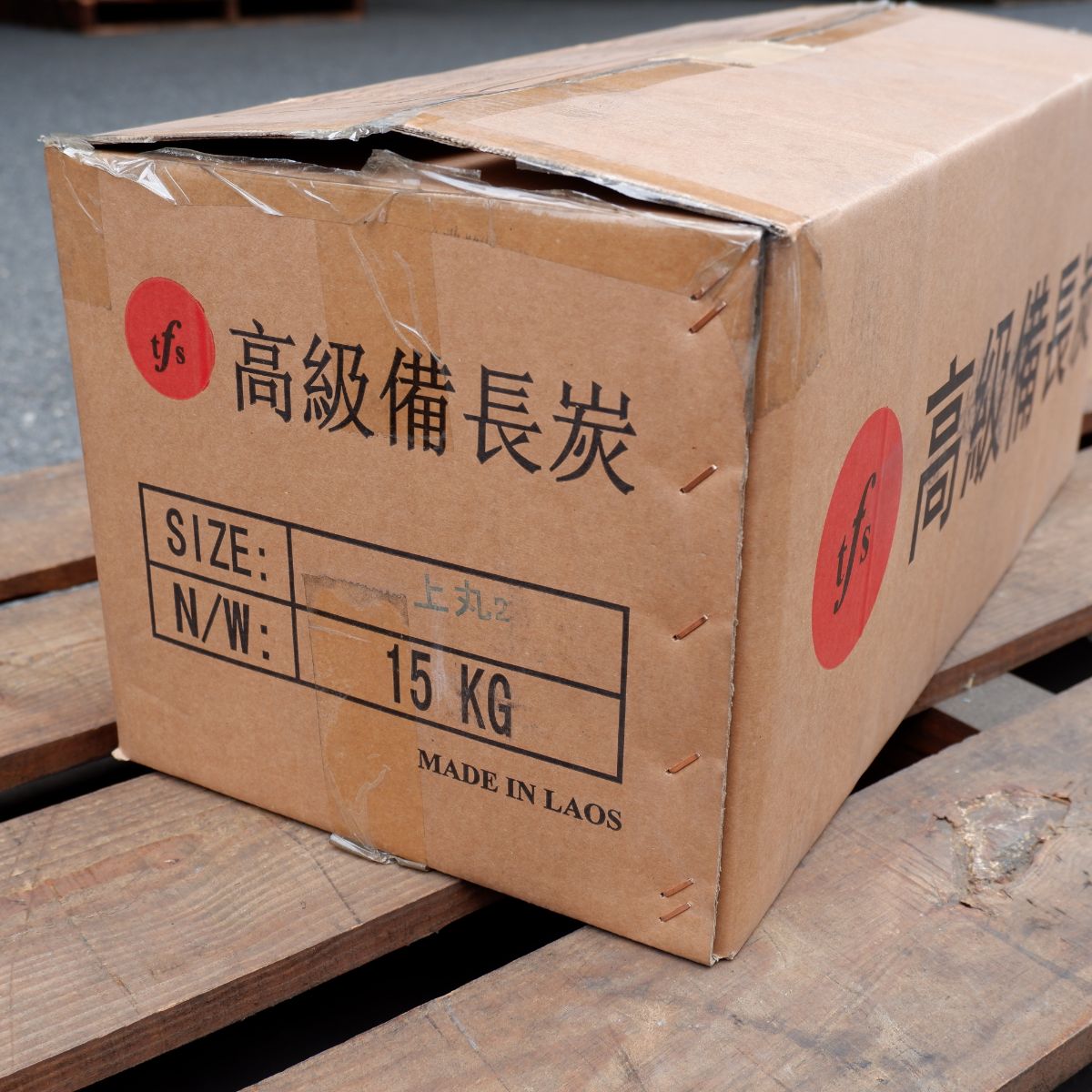 ラオスの備長炭です。上丸のは、備長炭の中でも、長さが長いサイズになります。切上丸よりも、太いタイプになります。上丸の(丸)は、炭が割れたり、割ったものではなく、丸いものを厳選しています。丸いので形がきれいで、お客様の前で焼くと喜ばれますよ。太いので、火持ちが長く一日中は必ず使えるものになります。備長炭は火力が強く、油が落ちても炎が出にくいので、食材が焦げるのを防ぎます。さらに、灰もオガ炭に比べると圧倒的に少ないので、安心してご使用いただけます。