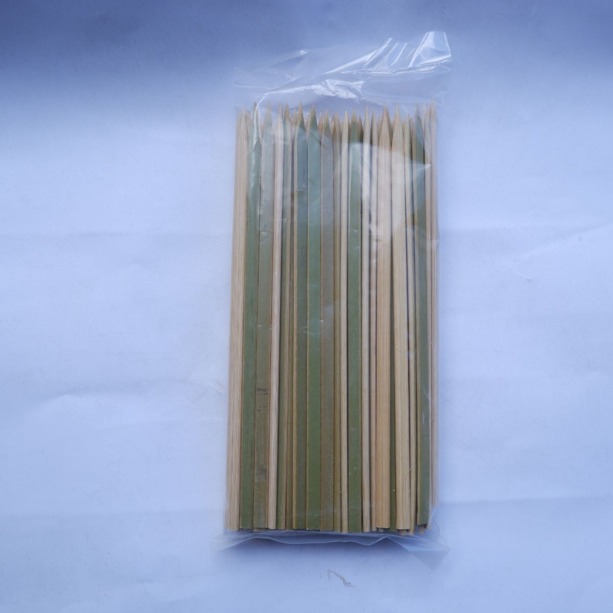 焼き鳥用や揚げ物(串カツなど)の平串です。平らな形をしているので、平串と言われています。厚さがあるタイプの串なので、丈夫に作られています。当社で扱っている鉄砲串は、12cm、15cm、18cmです。