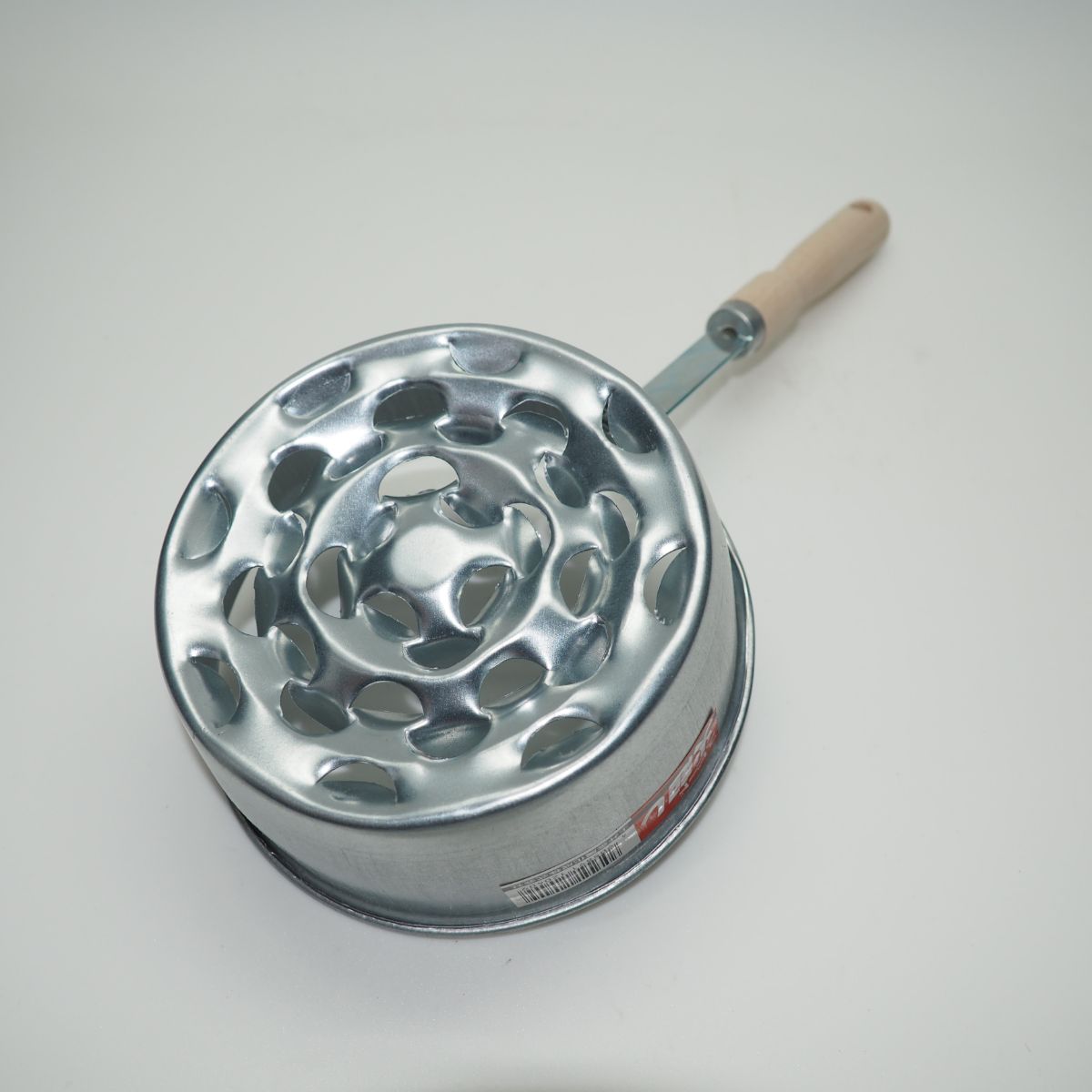 炭に火をつけるための火起こし器です。低価格で、使いやすいタイプになります。ガス火や着火剤を底に入れてお使いください。小さいサイズになりますので、サイズにはご注意ください。炭が5個程度入る大きさになります。